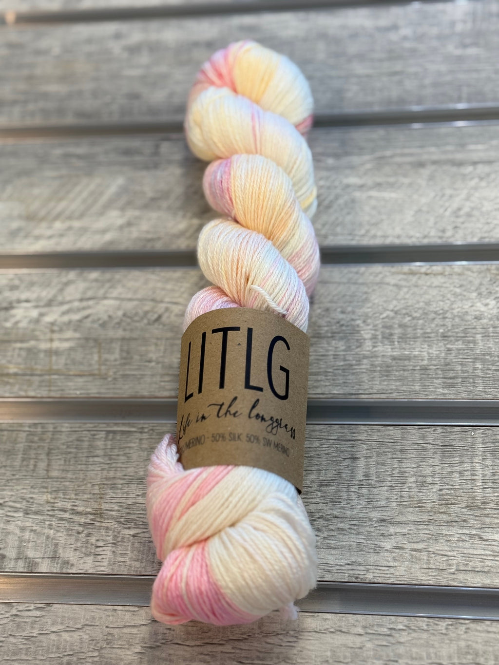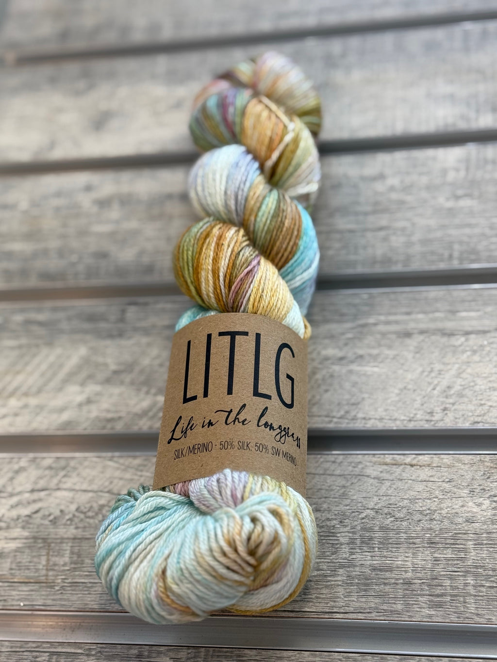 50% Superwash Merino 50% SilkA fingering weight yarn – Silky merino with a gloss and good drape.