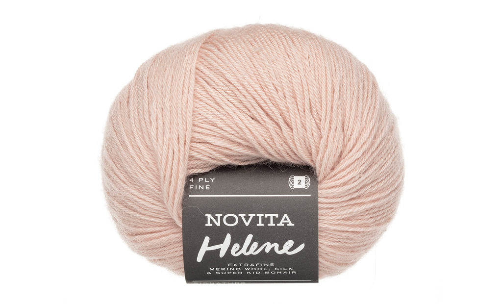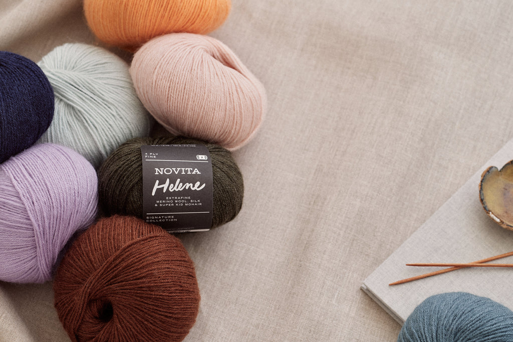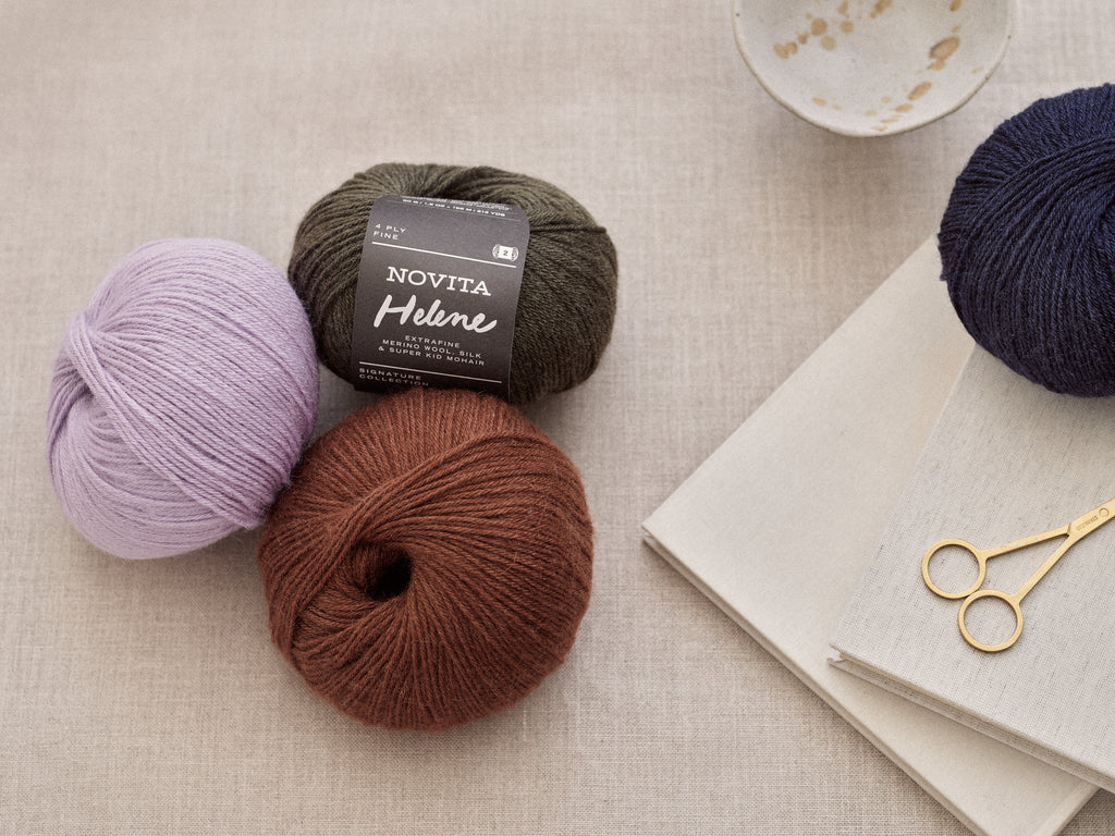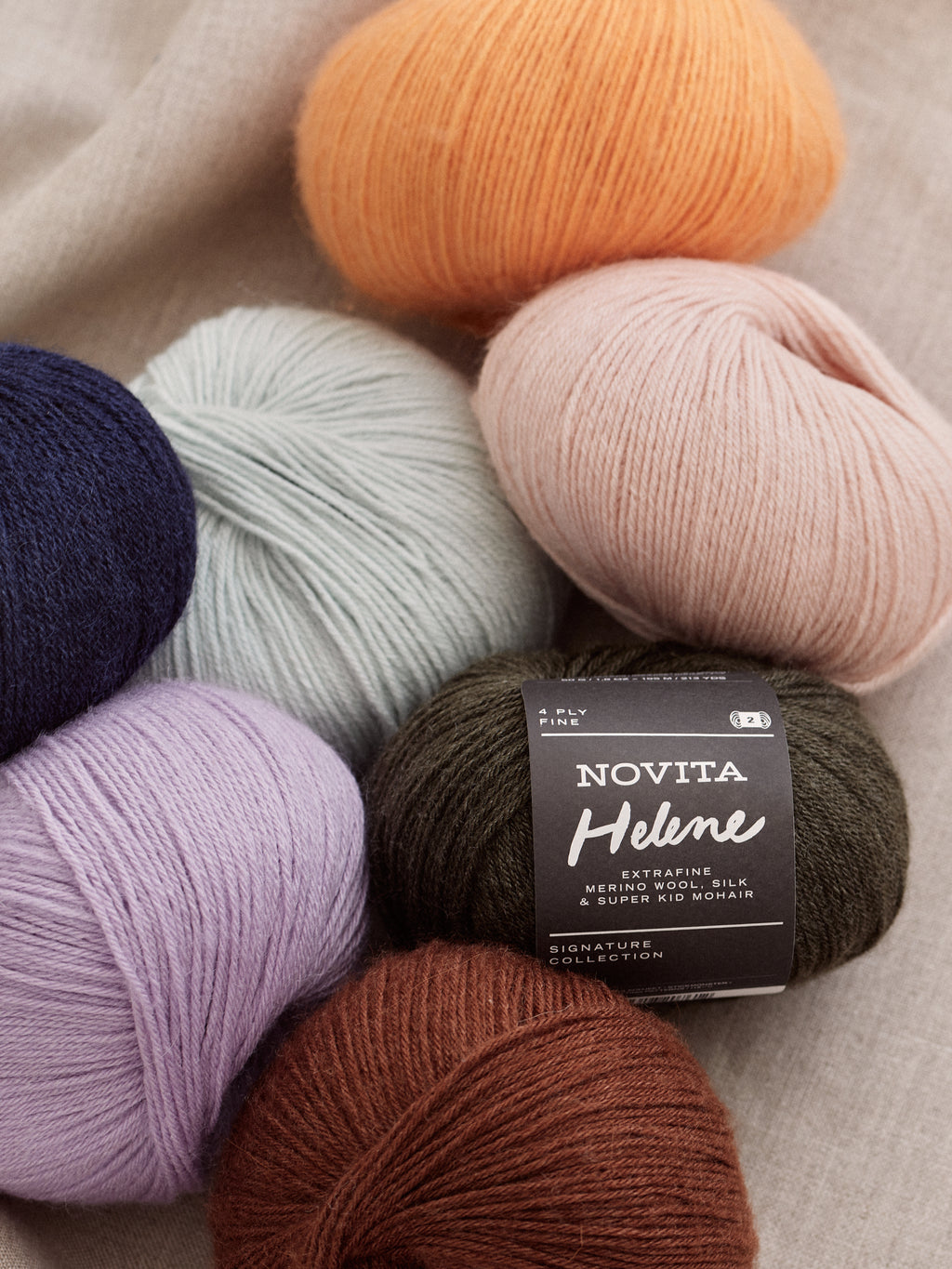 A dream to work with, Novita Helene is perfect for creating a whole variety of knits and accessories with a gorgeously luxe feel. This sophisticated 4ply yarn is crafted with 60% high quality merino wool and 30% sumptuously soft silk with 10% super kid mohair. The carefully created blend gives a wonderfully light and airy yarn that is simply gorgeous to work with. Helene lends itself to stunning cable and lace knits as well as smooth stockinette finishes. Offered in a beautifully balanced color palette, the yarn is ideal for creating a huge range of textured and colorwork knits. Economical to work with, it produces lightweight and stylish knits that will become wardrobe favorites for years to come. Helene is suitable for all patterns using 4ply yarn. A 50 g skein has 200 meters of yarn, and the recommended needle size is 3.5 mm (4 US). The gauge for this yarn is 25 stitches and 34 rows over 10 x 10 cm (4x4 in). Helene is Öko-Tex certified. The Novita Signature collection offers a carefully curated selection of yarns for discerning knitters. For inspiration, the collection looks to Nordic artists and other trendsetting creatives. Crafted from high quality materials and offering a luxe feel in a choice of gorgeous hues, you won’t be able to put your knitting down. The pieces you create with the Novita Signature collection yarns are guaranteed to become favourites you’ll wear again and again.