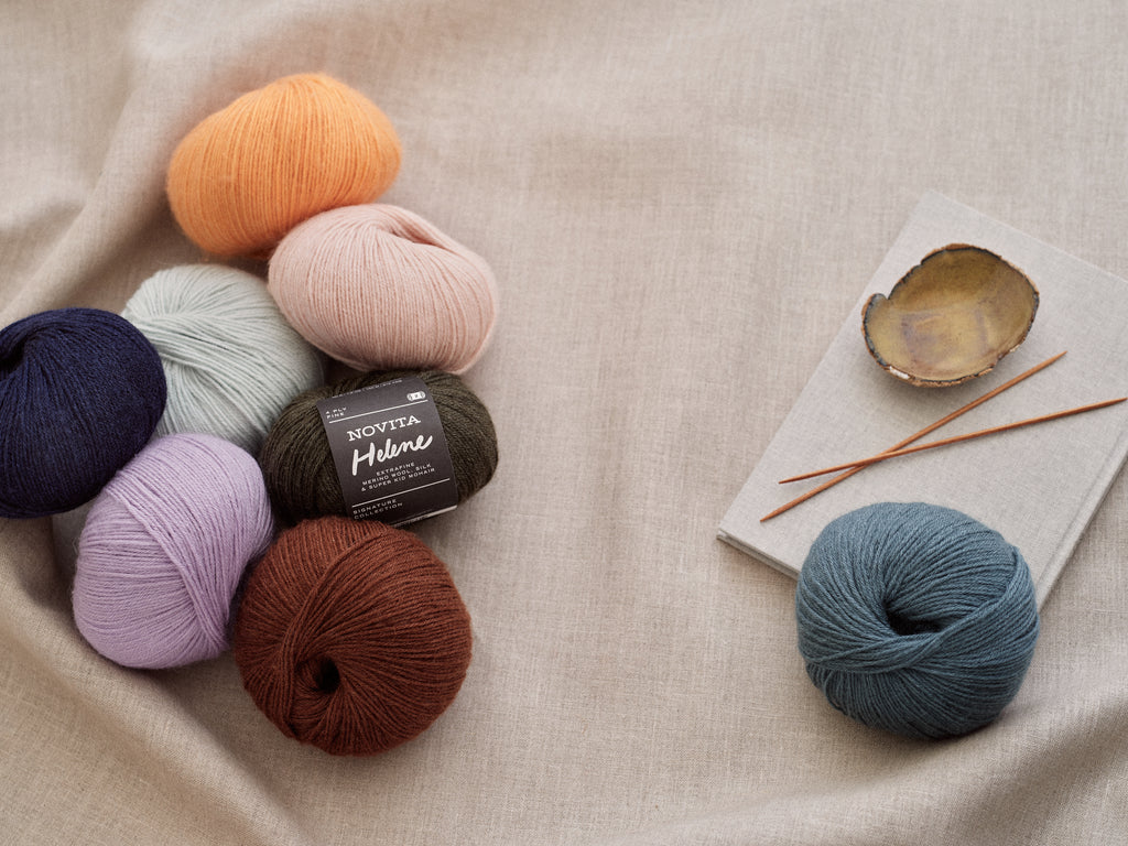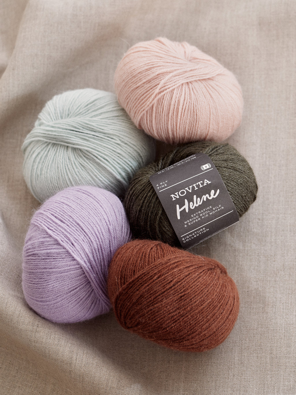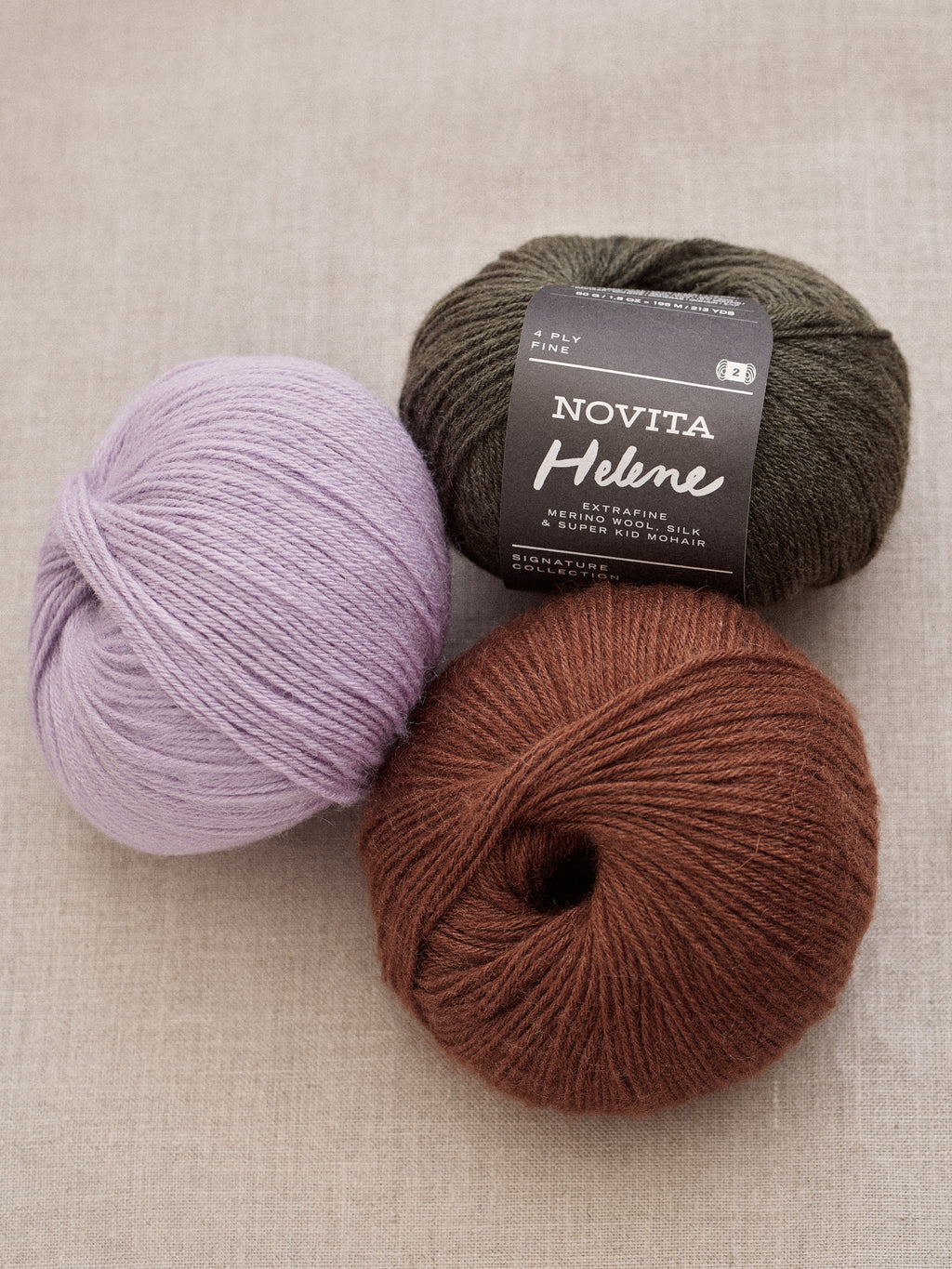 A dream to work with, Novita Helene is perfect for creating a whole variety of knits and accessories with a gorgeously luxe feel. This sophisticated 4ply yarn is crafted with 60% high quality merino wool and 30% sumptuously soft silk with 10% super kid mohair. The carefully created blend gives a wonderfully light and airy yarn that is simply gorgeous to work with. Helene lends itself to stunning cable and lace knits as well as smooth stockinette finishes. Offered in a beautifully balanced color palette, the yarn is ideal for creating a huge range of textured and colorwork knits. Economical to work with, it produces lightweight and stylish knits that will become wardrobe favorites for years to come. Helene is suitable for all patterns using 4ply yarn. A 50 g skein has 200 meters of yarn, and the recommended needle size is 3.5 mm (4 US). The gauge for this yarn is 25 stitches and 34 rows over 10 x 10 cm (4x4 in). Helene is Öko-Tex certified. The Novita Signature collection offers a carefully curated selection of yarns for discerning knitters. For inspiration, the collection looks to Nordic artists and other trendsetting creatives. Crafted from high quality materials and offering a luxe feel in a choice of gorgeous hues, you won’t be able to put your knitting down. The pieces you create with the Novita Signature collection yarns are guaranteed to become favourites you’ll wear again and again.